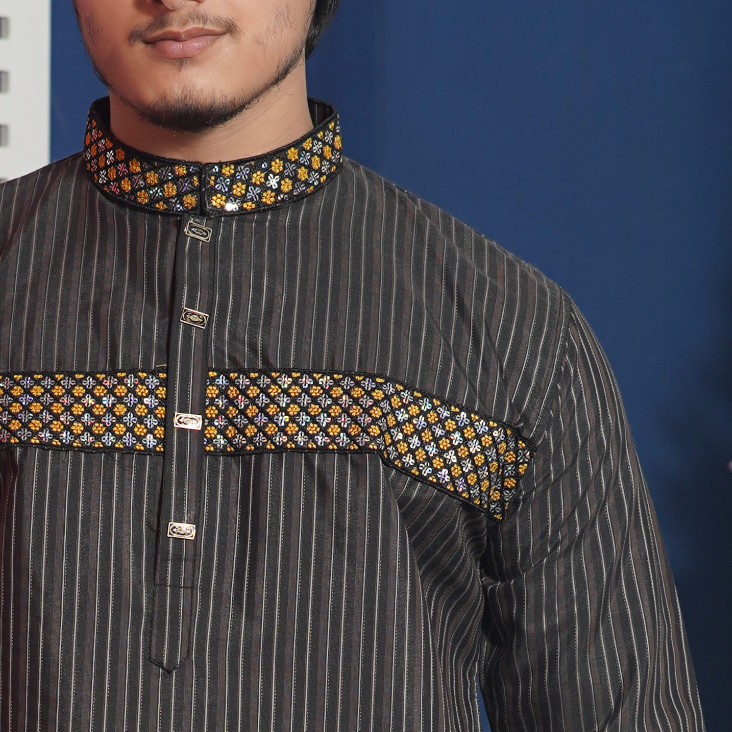 স্টাইলিশ ব্ল্যাক অ্যান্ড হোয়াইট পাঞ্জাবি – আধুনিকতার ছোঁয়ায় ঐতিহ্য